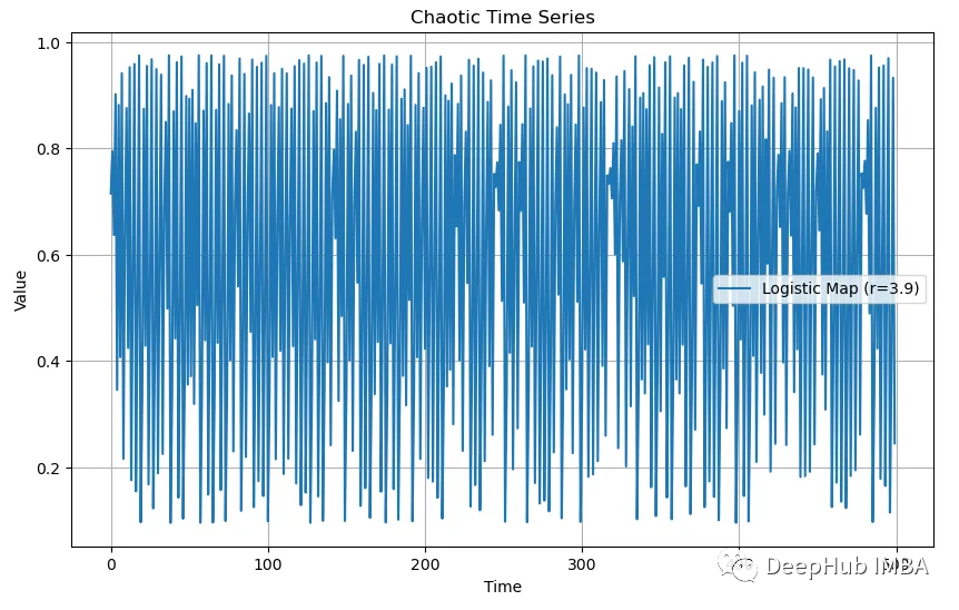 r = 3.9 # Parameter r, set to a value that causes chaotic behavior