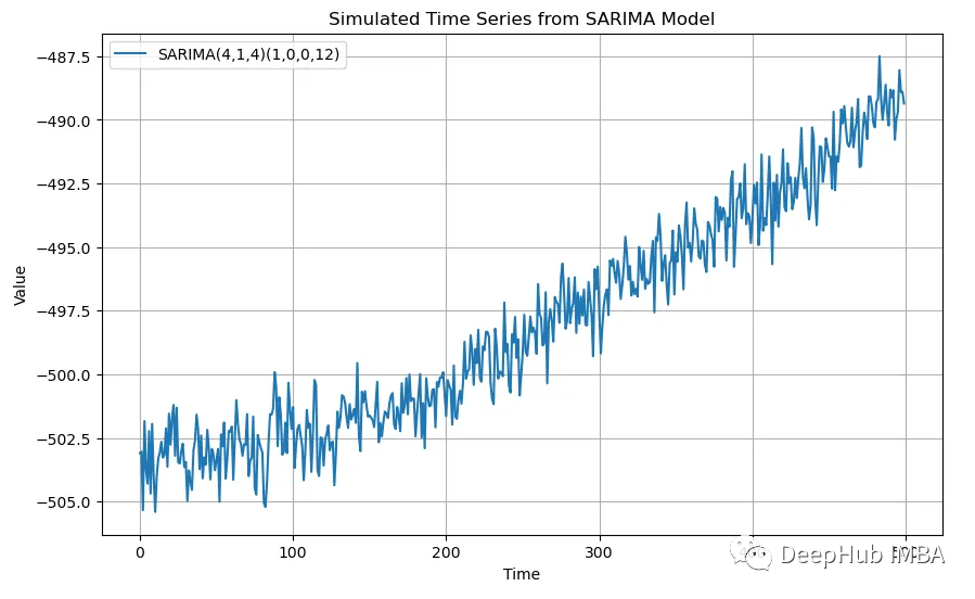 SARIMA(4,1,4)(1,0,0,12)的模拟数据