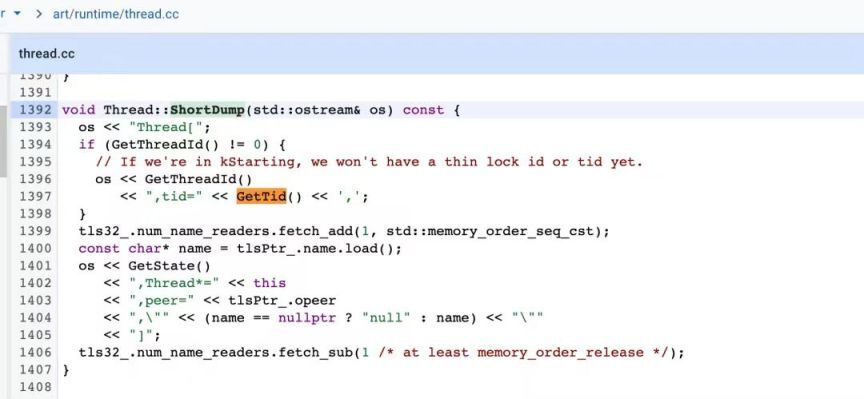 在 Art Thread.cc 方法中,将 Java 中的 Thread 对象转换成 C++ 中的 Thread 对象,调用 ShortDump 打印线程的相关信息,我们通过字符串匹配到核心的 Tid= 的信息,即可获取到线程的 Tid。