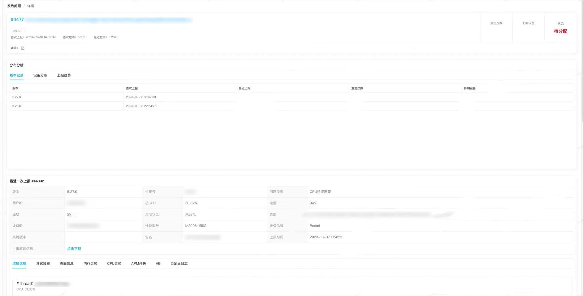 具体的堆栈信息 & 发热信息平台展示如下: