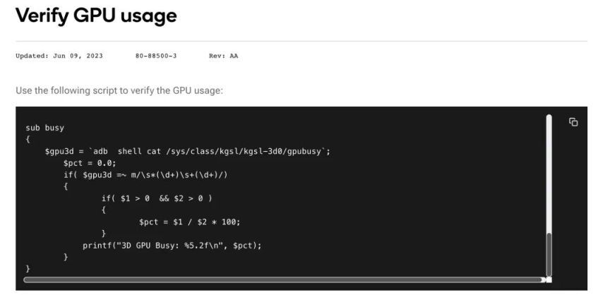 高通芯片的设备,我们可以参考 /sys/class/kgsl/kgsl-3d0/gpubusy 下文件内容,参考高通官网的说明。