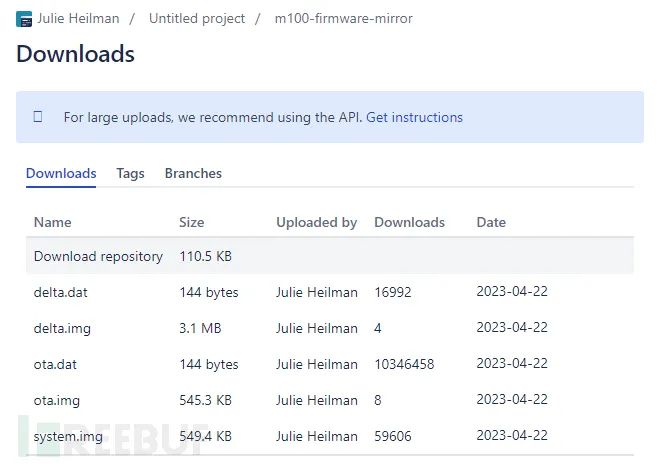 为了最小化初始漏洞利用的足迹,所有可卸载的元素都封装在加密和压缩的自定义二进制归档中。这个归档被谨慎地托管在合法网站上,巧妙地伪装成标记为“m100”的神秘设备的固件二进制文件。