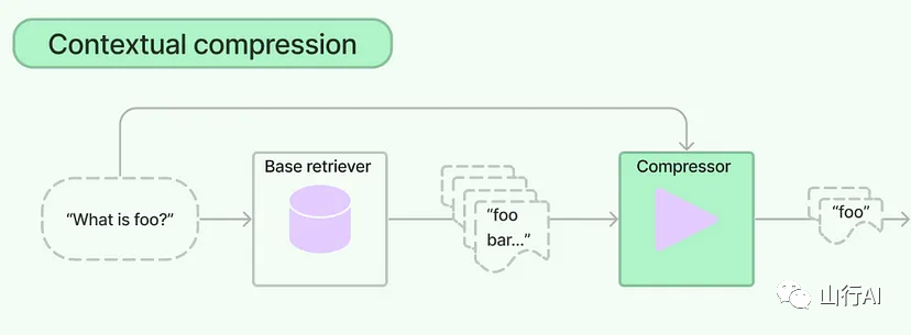 •“上下文压缩检索器将查询转发给基本检索器。•然后,它将初始文档提交给文档压缩器。•文档压缩器通过减少文档内容或完全删除它们来缩短文档列表。