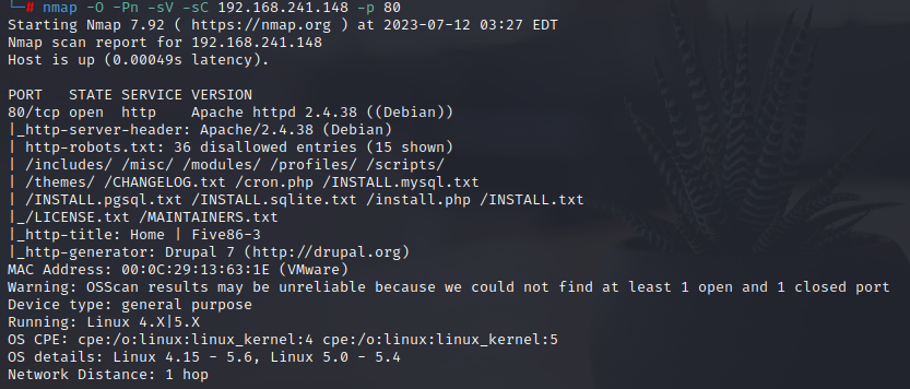综上信息搜集可以发现,该目标机器为Linux系统,仅开放了80端口,CMS为Drupal,重点从web页面找突破口
