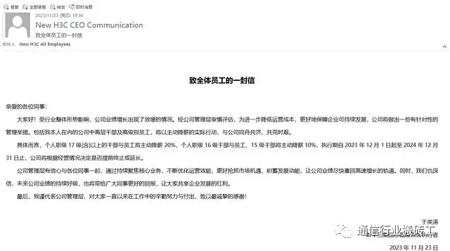 新华三CEO于英涛(Tony yu)发表告全体员工书:面对挑战,新华三如何应对?