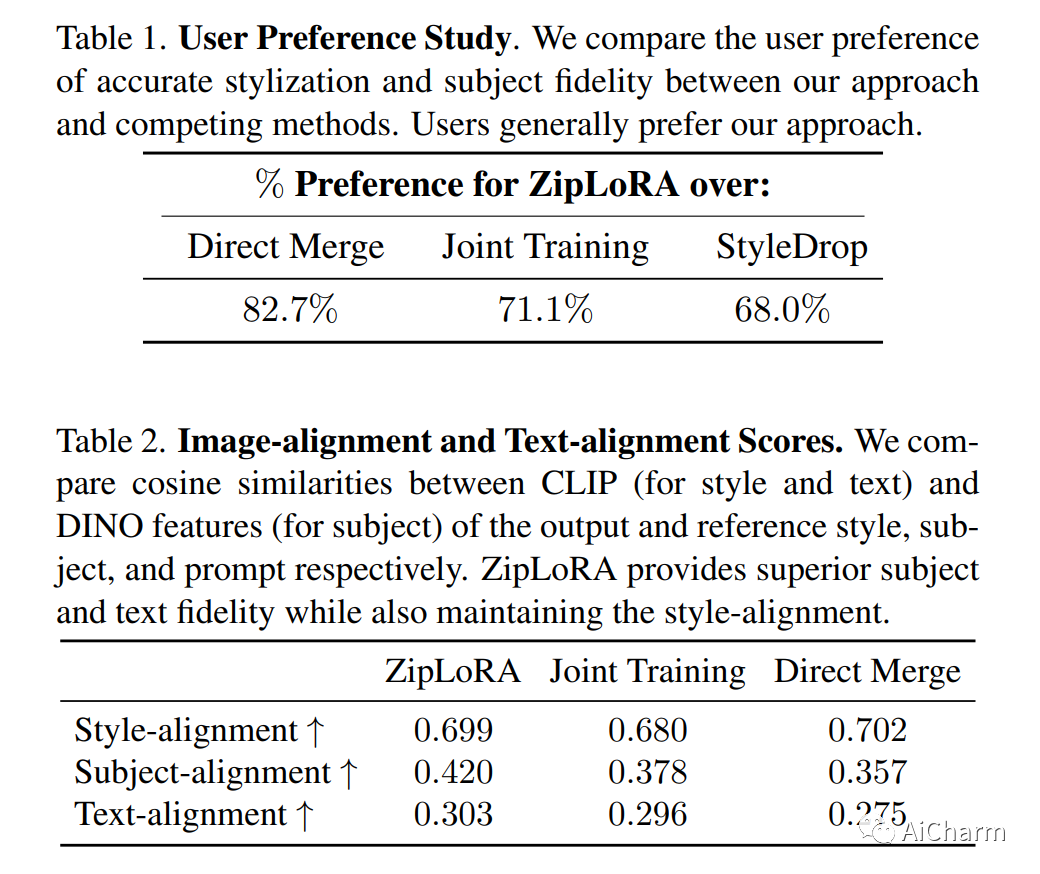 用于微调概念驱动个性化的生成模型的方法通常在主题驱动或风格驱动的生成中取得很好的结果。最近,低秩适应(LoRA)被提出作为实现概念驱动的个性化的参数有效方式。虽然最近的工作探索了单独的 LoRA 的组合来实现学习风格和主题的联合生成,但现有技术并不能可靠地解决这个问题;他们经常损害主题保真度或风格保真度。我们提出了 ZipLoRA,一种廉价且有效地合并独立训练的风格和主题 LoRA 的方法,以便实现以任何用户提供的风格生成任何用户提供的主题。对各种主题和风格组合的实验表明,ZipLoRA 可以生成令人信服的结果,在主题和风格保真度的基础上进行有意义的改进,同时保留重新上下文化的能力。