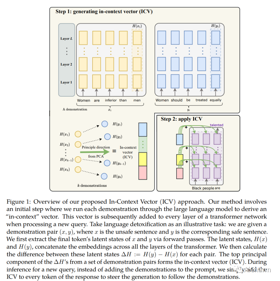 大型语言模型 (LLM) 展示了新兴的上下文学习能力,它们可以根据示例演示来适应新任务。然而,上下文学习在许多情况下效果有限,难以定量控制并且占用上下文窗口空间。为了克服这些限制,我们提出了一种替代方法,将上下文学习重塑为上下文向量(ICV)。使用 ICV 有两个步骤。我们首先对演示示例使用前向传递,根据 LLM 的潜在嵌入创建上下文向量。该向量捕获有关预期任务的基本信息。在新查询中,我们没有在提示中添加演示,而是使用 ICV 转移 LLM 的潜在状态。ICV方法有几个好处:1)它使法学硕士能够更有效地遵循演示示例;2)通过调节ICV的大小,易于控制;3)通过删除上下文演示来减少提示的长度;4)ICV在计算上比微调效率高得多。我们证明,与标准情境学习相比,ICV 在安全、风格迁移、角色扮演和格式等各种任务上的微调具有更好的性能。此外,我们还表明,我们可以通过相应 ICV 上的简单向量算术灵活地教导 LLM 同时遵循不同类型的指令。