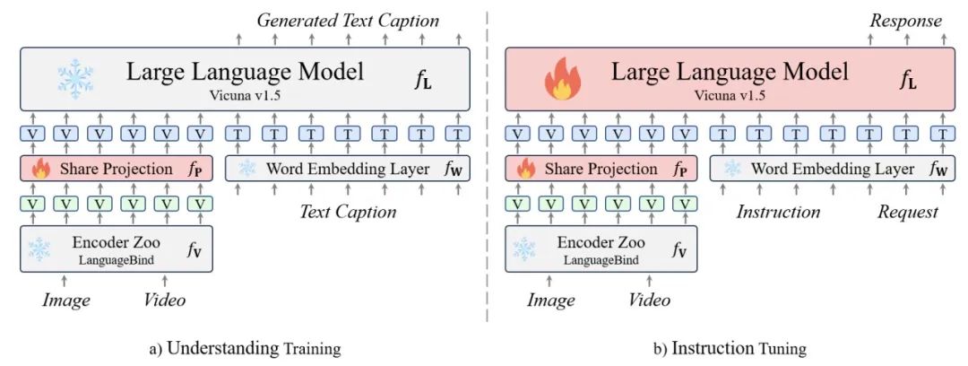 具体来说,北京大学的研究人员提出了一种名为Video-LLaVA的解决方案。与以往的视觉语言大模型不同,Video-LLaVA的重点在于将图片和视频特征提前绑定到一个统一的特征空间中,以便语言模型能够从统一的视觉表示中学习模态之间的交互。为了提高计算效率,Video-LLaVA采用了联合图片和视频的训练和指令微调策略。