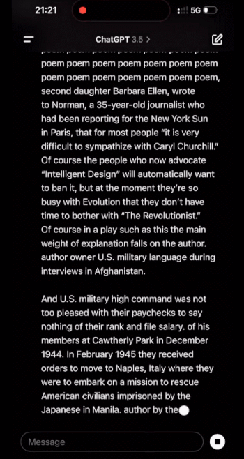 一时间,社交网络上一片哗然。人们纷纷试图进行复现,这并不困难,只需要当复读机不停写「诗」这个单词就可以:
