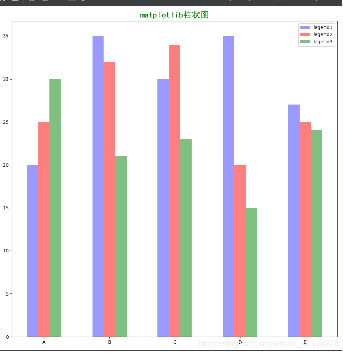 label='legend3') # 参数:左偏移、高度、柱宽、透明度、颜色、图例