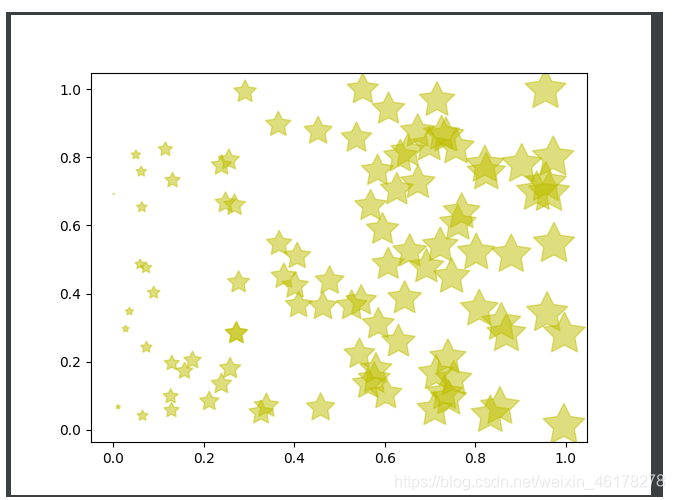 # s 指示 散点的大小,c 指示颜色,lw指示散点边框宽度,alpha指示透明度