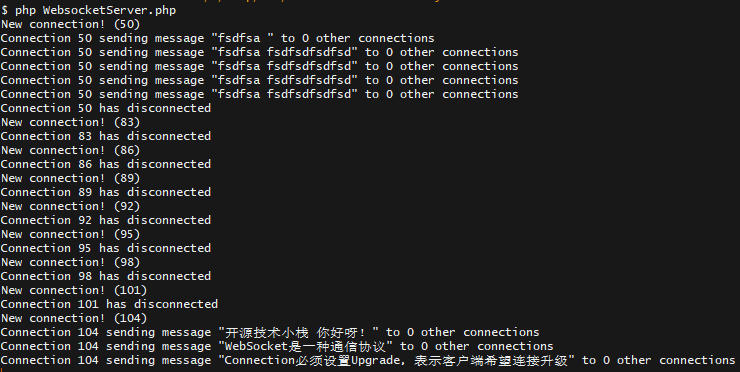 echo sprintf('Connection %d sending message "%s" to %d other connection%s' . "\n"