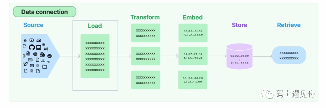 一些基于大型语言模型的应用经常需要用到模型数据集中没有的数据。针对这一需求,LangChain提供了一系列的工具可以让你从各种数据源中加载新的数据,转换数据,存储数据以及访问数据。
