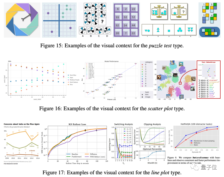 IQTest侧重于智力测试题,FunctionQA专注于函数图形的推理,而PaperQA则关注于对文献中的图表进行深入理解,有效地弥补了现有数据集的不足。