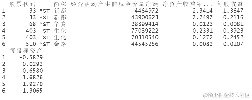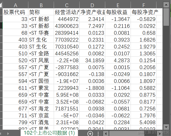 通过对某股票数据分析,了解经营活动产生的现金流量净额、净资产收益率... 每股收益和每股净资产对股票是否ST的影响。