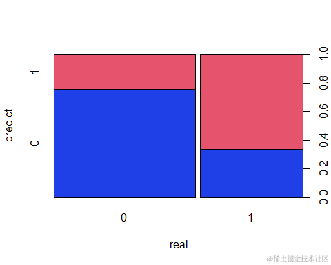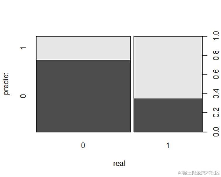 从AUC的值来看,达到了0.8,因此可以认为模型具有较好的预测效果,同时可以看到roc曲线靠近图的左上方,说明模型对客户是否流失具有较好的识别能力,因此该模型可以作为预警系统。然后对模型的残差进行评估。