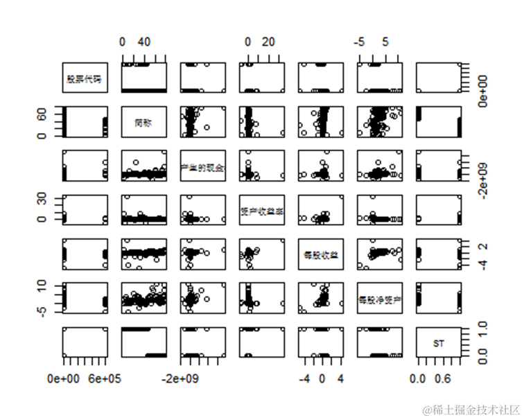 可以看到ST股票和非ST股票的4个变量具有显著差异。