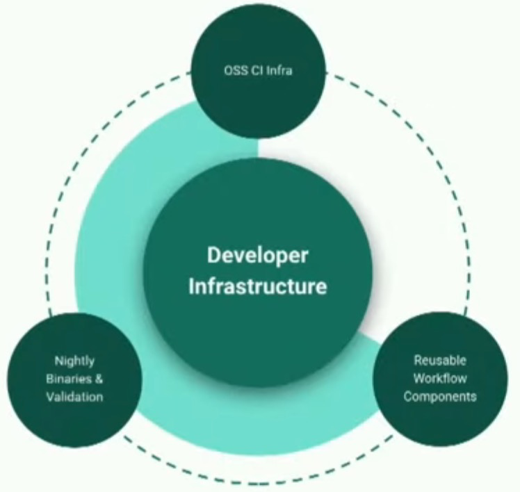 首先,我想先来介绍一下开发者基础设施的使命。在过去几年里,这个使命已经有了一些变化,我认为未来也会有所变化。所以首先,2022年我们的重点是实现稳定,比如CI都是绿的。