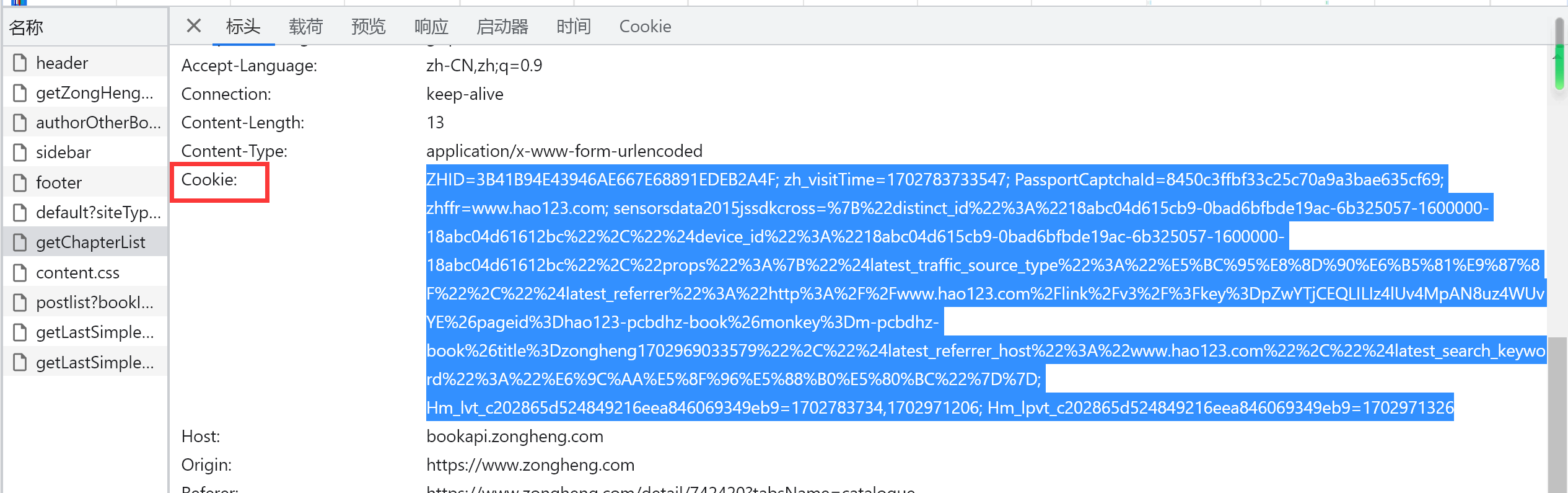 "Cookie":"ZHID=3B41B94E43946AE667E68891EDEB2A4F; zh_visitTime=1702783733547; PassportCaptchaId=8450c3ffbf33c25c70a9a3bae635cf69; zhffr=www.hao123.com; sensorsdata2015jssdkcross=%7B%22distinct_id%22%3A%2218abc04d615cb9-0bad6bfbde19ac-6b325057-1600000-18abc04d61612bc%22%2C%22%24device_id%22%3A%2218abc04d615cb9-0bad6bfbde19ac-6b325057-1600000-18abc04d61612bc%22%2C%22props%22%3A%7B%22%24latest_traffic_source_type%22%3A%22%E5%BC%95%E8%8D%90%E6%B5%81%E9%87%8F%22%2C%22%24latest_referrer%22%3A%22http%3A%2F%2Fwww.hao123.com%2Flink%2Fv3%2F%3Fkey%3DpZwYTjCEQLILIz4lUv4MpAN8uz4WUvYE%26pageid%3Dhao123-pcbdhz-book%26monkey%3Dm-pcbdhz-book%26title%3Dzongheng1702969033579%22%2C%22%24latest_referrer_host%22%3A%22www.hao123.com%22%2C%22%24latest_search_keyword%22%3A%22%E6%9C%AA%E5%8F%96%E5%88%B0%E5%80%BC%22%7D%7D; Hm_lvt_c202865d524849216eea846069349eb9=1702783734,1702971206; Hm_lpvt_c202865d524849216eea846069349eb9=1702971326"