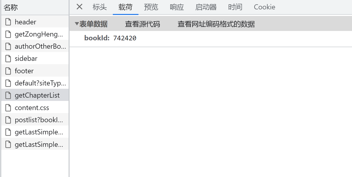 可以看到小说的id以及小说每篇文章的id,这两个信息我们都已经有了。