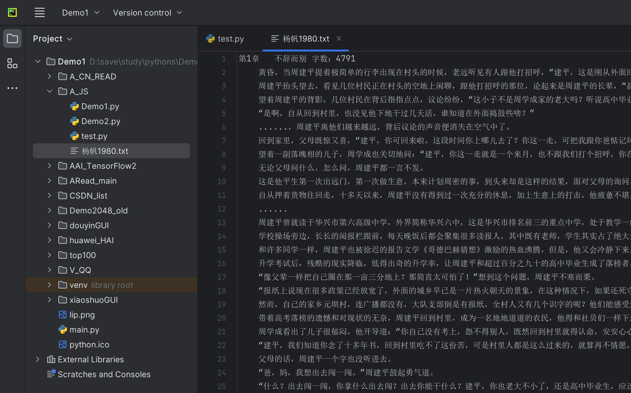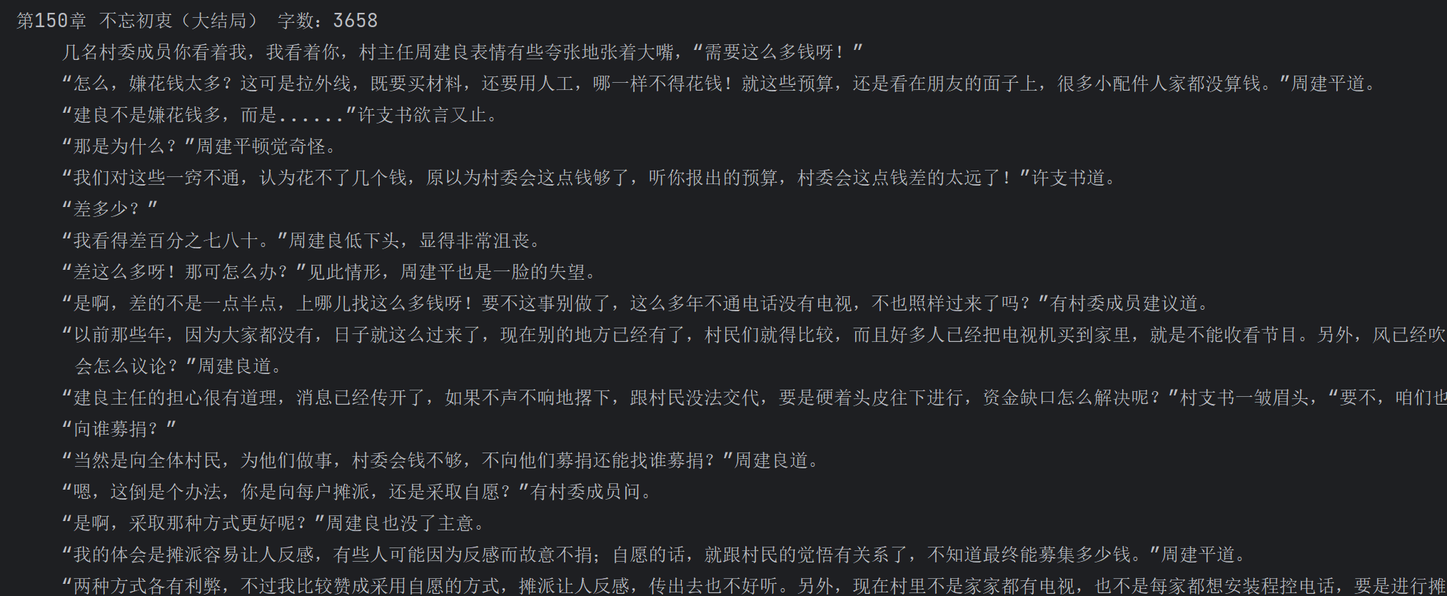 下面是执行的代码,如果你需要搞其它的文章,在对应的网址上找到小说ID提换一下即可。