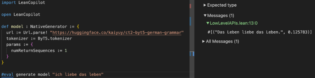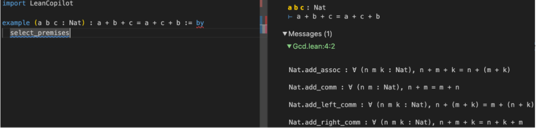 大家可以根据官方教程配置 Lean Copilot,配置好后就可以进行实验了。项目作者也给出了一些官方示例。