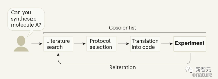 实验评测中,Coscientist利用GPT-4,在人类的提示下检索化学文献,成功设计出一个反应途径来合成一个分子。