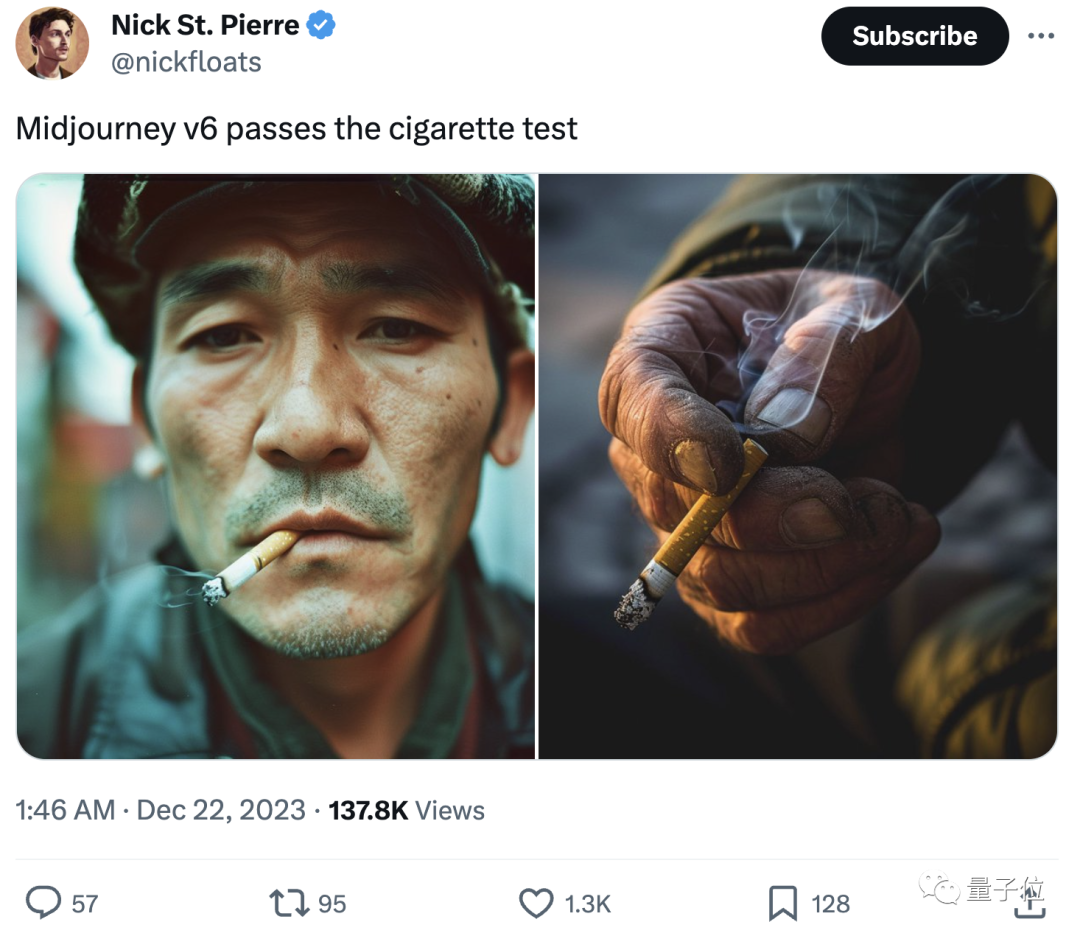 甚至,V6还通过的香烟测试。不仅烟真实,手的岁月感也刻画得淋漓尽致: