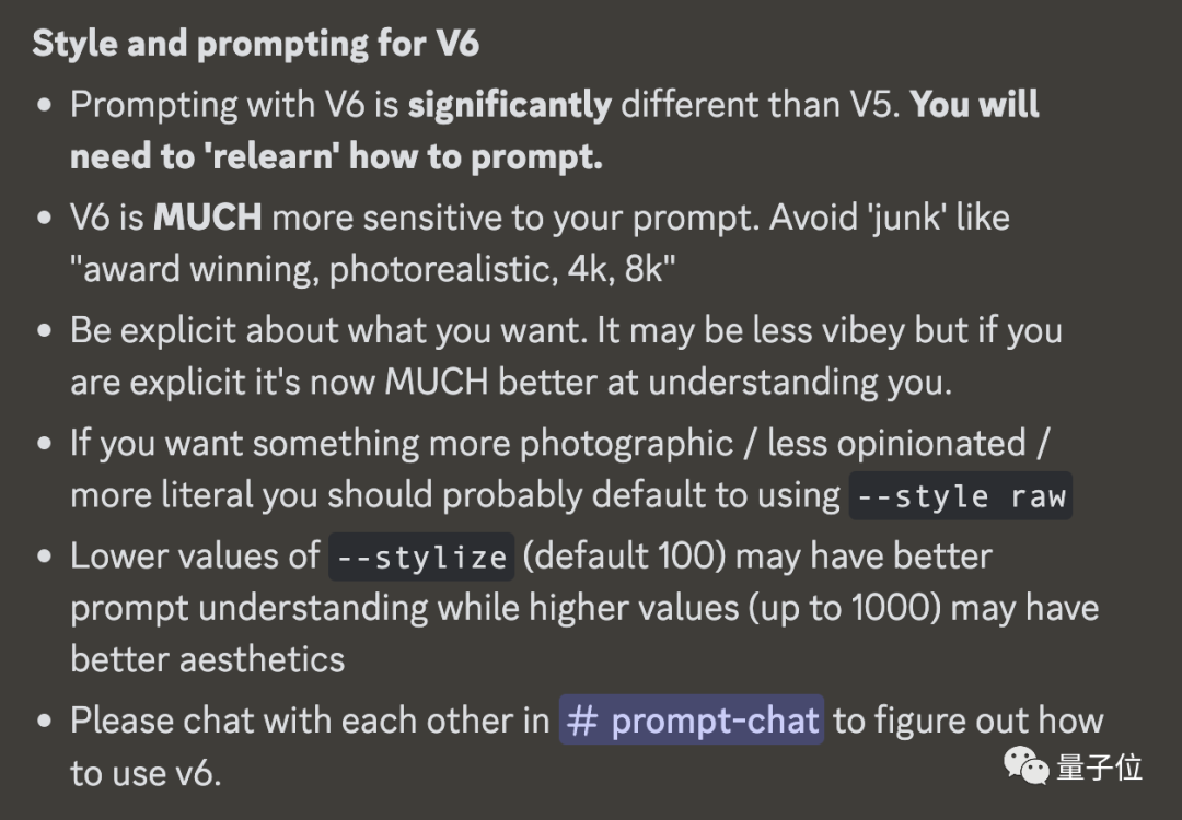 David Holz明确表示“V6的提示与V5有很大不同,你需要重新学习如何提示”。