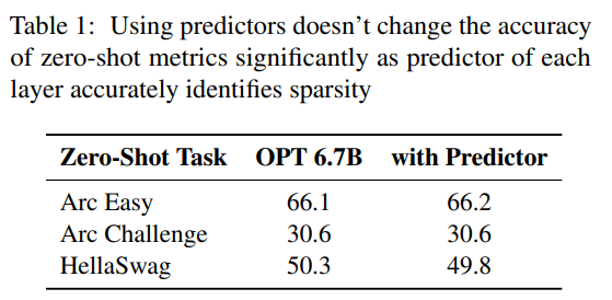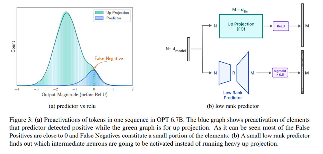 预测器。如图 3a 所示,本文的预测器能准确识别大多数激活的神经元,但偶尔也会误识数值接近于零的非激活神经元。值得注意的是,这些接近零值的假负类神经元被排除后,并不会明显改变最终输出结果。此外,如表 1 所示,这样的预测准确度水平并不会对模型在零样本任务中的表现产生不利影响。