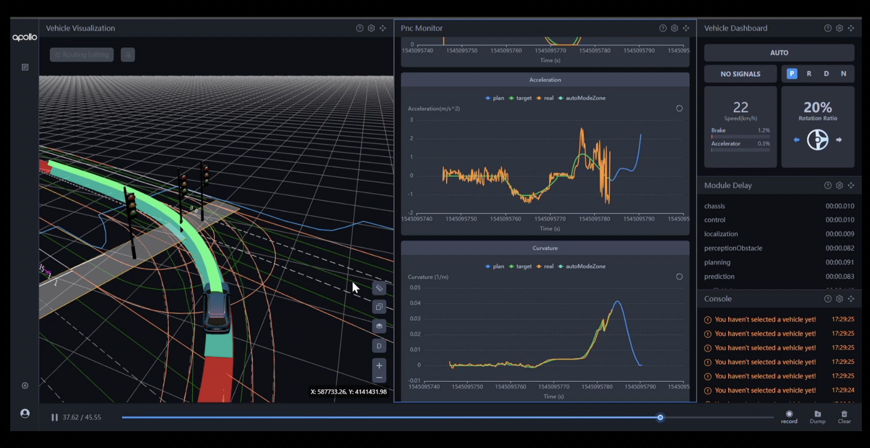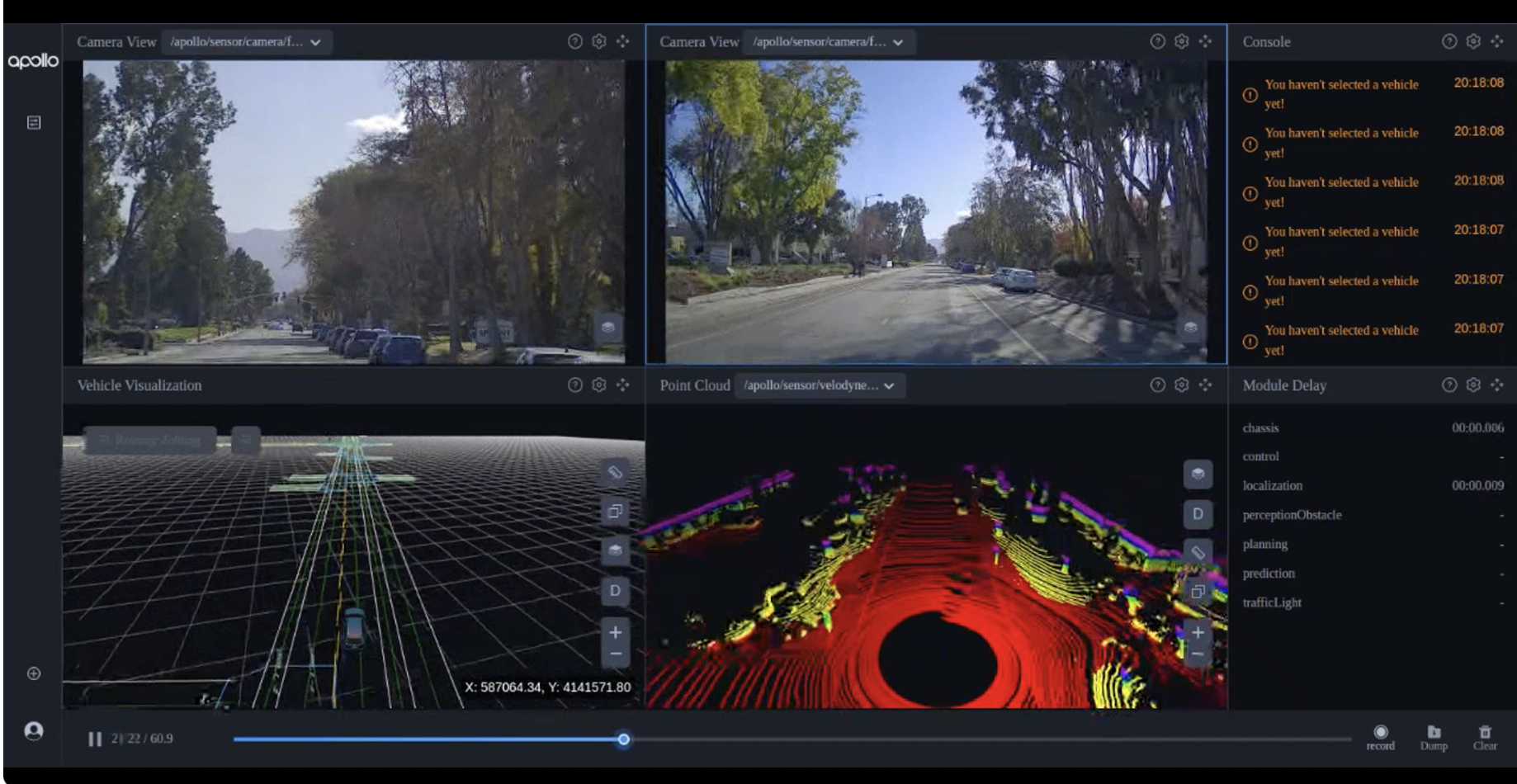 Dreamview 是一个用于可视化和监控自动驾驶系统的用户界面。它通常提供了实时的车辆状态、感知信息、规划路径以及其他重要的驾驶数据,以帮助开发人员和工程师对自动驾驶系统的运行状态进行实时监控。