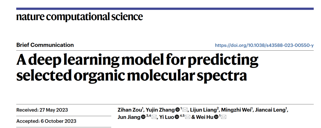 Zou, Z., Zhang, Y., Liang, L. et al. A deep learning model for predicting selected organic molecular spectra. Nat Comput Sci 3, 957–964 (2023).
