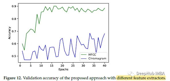 作者试图直接在原始时间序列数据上进行训练,但是这导致梯度消失问题和非常长的训练时间。另一种选择是使用色谱图[56],这也是一种与MFCC类似的特征提取方法,但会导致训练不稳定。所以作者最终决定使用MFCC。