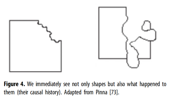 举一个非常简单的例子,一个角变形的正方形仍然会被视为一个正方形(图 4),但是发生了一些事情(例如,根据变形,角被熔化或被咬掉的正方形;参见[73] ] 了解更多示例)。此类事件也是模式,因为我们很容易推断和感知(合理的解释)感官输入的因果历史(生成模型)[74,75]。艺术观察家发现艺术中的新“错误”会发生类似的情况,需要付出更多的努力,因此承担更多的风险(空手而归),但在取得意想不到的(有风险的)预测进展时也会有更多的乐趣。