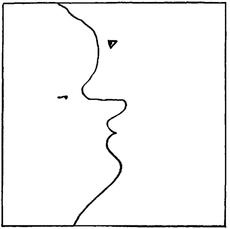 图 2. Hebb [43] 中的模糊数据。为什么这样的数字如此吸引人?在 PP 帐户中,缺勤可能会变得有意义(作为障碍或预测错误)。简单的线条可能会让你觉得它没什么意义。但一旦你看的时间更长一点,情况就会发生变化,可能是因为你的视觉系统记录到这条线偏离了你期望的平均随机绘制线的样子(预测错误)。这个预测误差暗示了抽屉的意图,这反过来又创造了预测误差的预期可减少性,这通过发现一张脸而实现(在简短的搜索之后)。但这留下了一些剩余的错误:一张脸有一个奇怪的轮廓,这导致了第二张脸的发现。然后,当一个人聚焦在这张新面孔上时,另一个人就失去了它的“边缘”(一个新错误),因为我们的视觉系统只能将其分配给一个对象,依此类推。在一个非常简单的刺激中,已经存在好奇心、认知行动和发现的微循环。标题改编自 Van de Cruys 等人。 [25]。