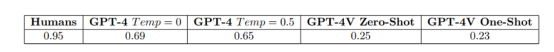 对于纯文本的GPT-4来说,研究人员使用更加表达丰富的提示对GPT-4的纯文本版本进行评估,该提示包括说明和已解决任务的示例,如果GPT-4回答错误,会要求它提供不同的答案,最多尝试三次。
