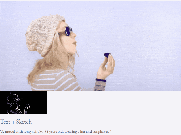 给定文本与深度图或者文本与素描草图,TF-T2V 能够进行可控的视频生成: