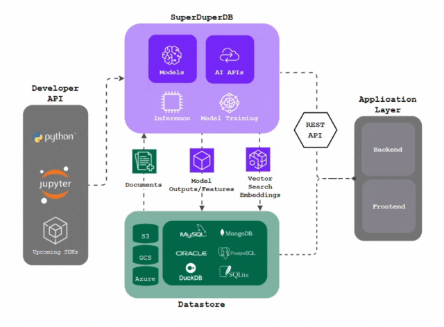 SuperDuperDB消除了复杂的MLOps管道和专用向量数据库的需求,使我们能够通过简单的Python接口,高效灵活地构建端到端的AI应用!