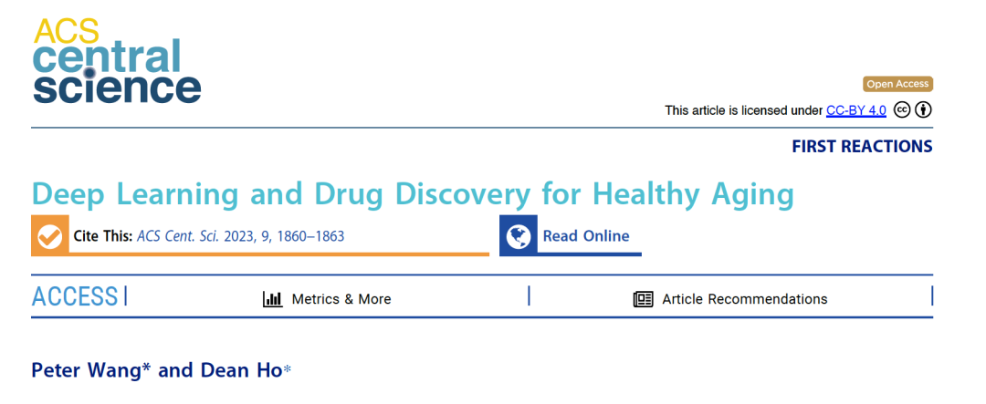 Wang, P., & Ho, D. (2023). Deep Learning and Drug Discovery for Healthy Aging. ACS Central Science, 9(10), 1860-1863.