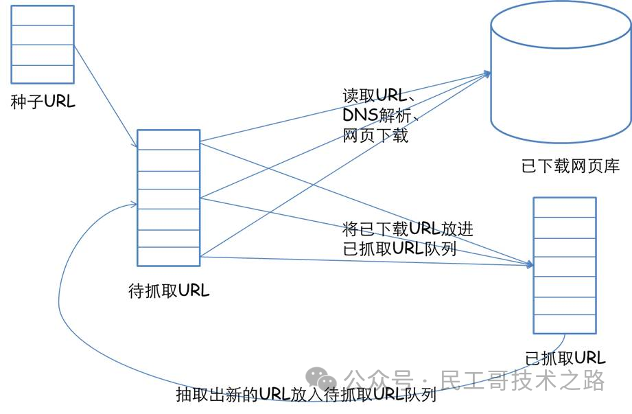 网络爬虫(Web Crawler)诞生于1993年,它是一种自动化的网络技术,通过模拟人类访问网页的行为,自动地抓取网络中的信息。一般分为三个阶段:数据收集、处理数据、存储数据。