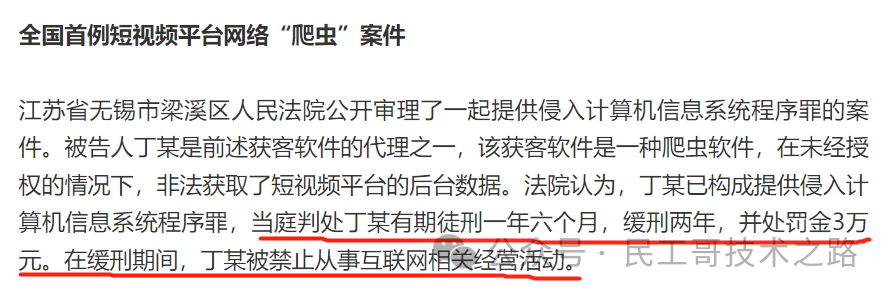 爬虫玩的好,监狱进的早;爬虫爬得欢,监狱要坐穿;数据玩的溜,牢饭吃个够。”这句技术圈内广泛流传的调侃并非是危言耸听,因为近些年来有太多的优秀的爬虫程序员们因此而面临牢狱之灾!