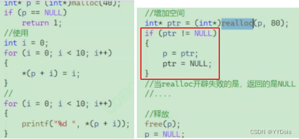 int*p=(int*)realloc(NULL,40);等价于malloc(40)