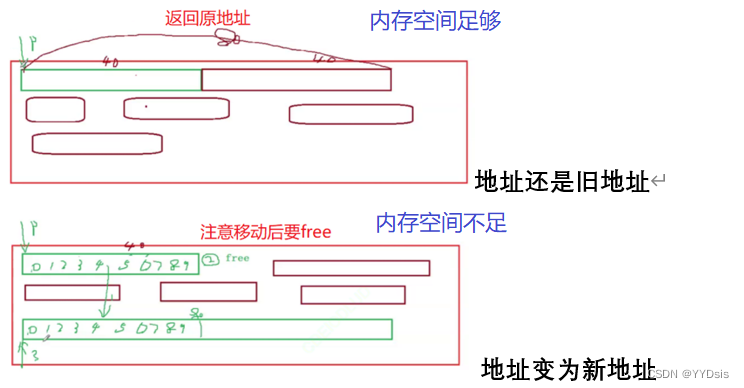 申请内存起始位置是空指针时:等价于malloc