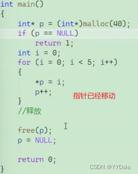 在释放时,p指针已经移动,指向的不再是动态内存空间的起始位置