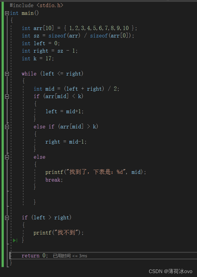 但是当数组有序时,这样的算法过于繁琐,所以我们使用二分法去改变算法使其变的简单;这种折半的方法会使运算变得更加快速。接下来我将会讲述我在写这个代码时所遇到的错误。