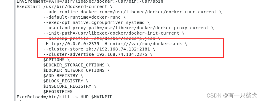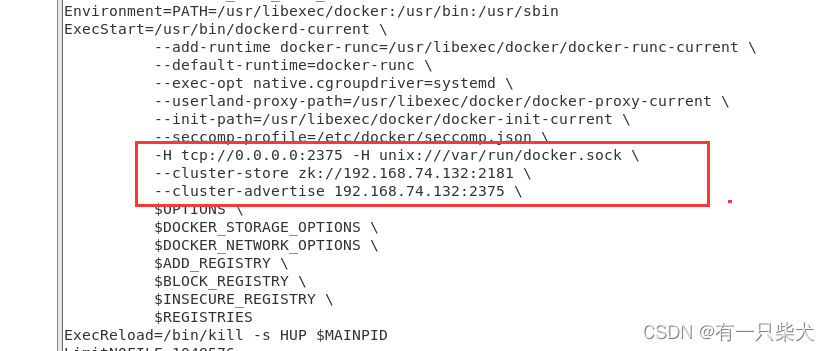 2)master节点修改docker.service文件。加入zookeeper注册中心的支持。