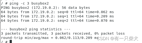2)在其中一个容器内可以执行ping 容器名称,看看两个容器内的虚拟IP地址是否可以联通。