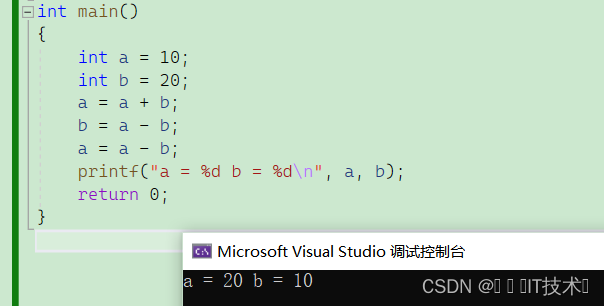 第一种写法确实实现了交换,但是有缺陷:假设a和b相加的结果超出的int整型的范围,那么a+b赋值给a时必然导致某些位的丢失。所以对于一些大的数是不适用的!!