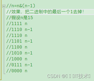 n=n&(n-1)的效果是把二进制中的最后一个1去掉。