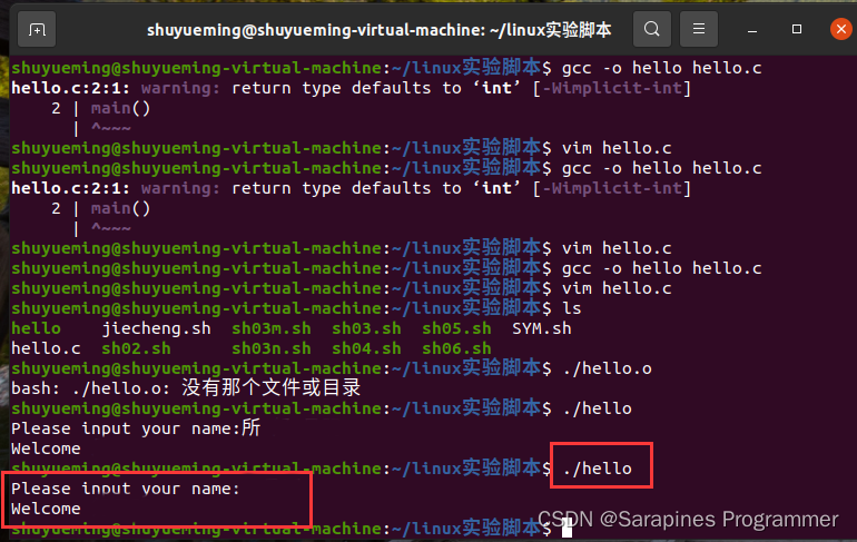输入./hello运行结果如下: